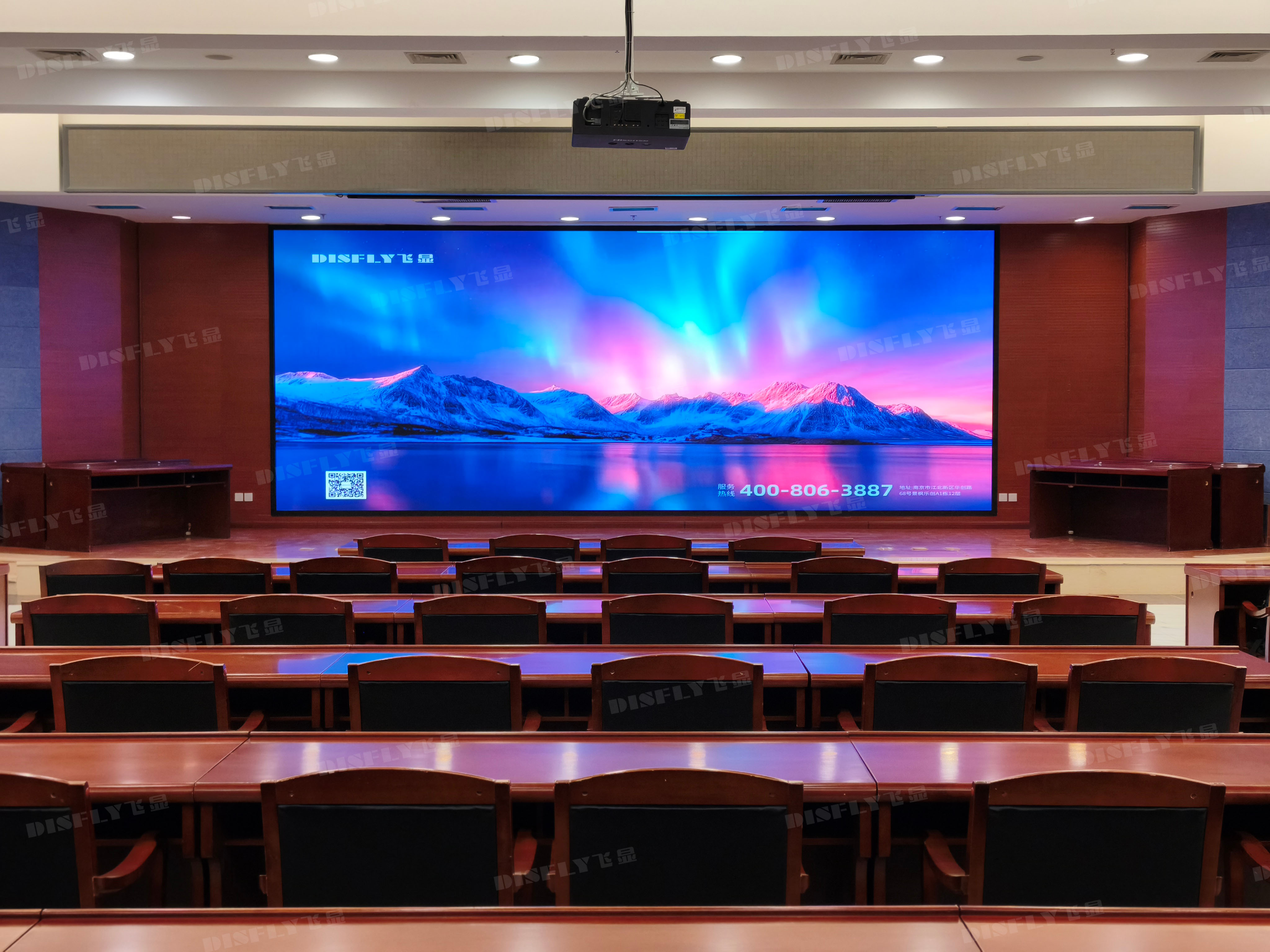 系统内嵌:将P1.25 COB大屏与音响设备深度集成,实现墙面平整统一。